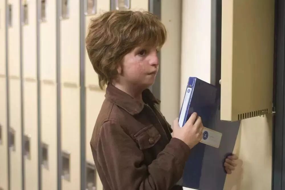 无论走到哪儿,奥吉都带着这个头盔,他也因此在学校备受歧视。