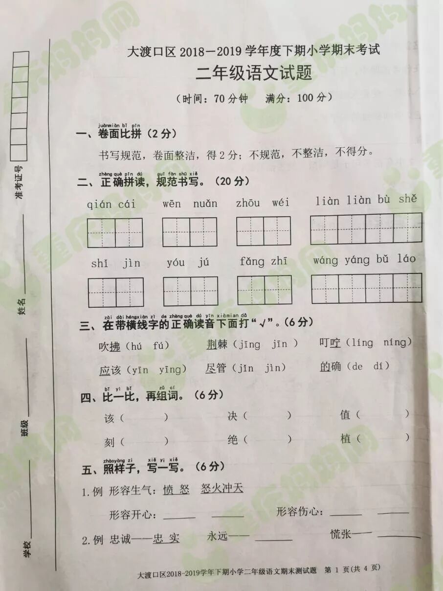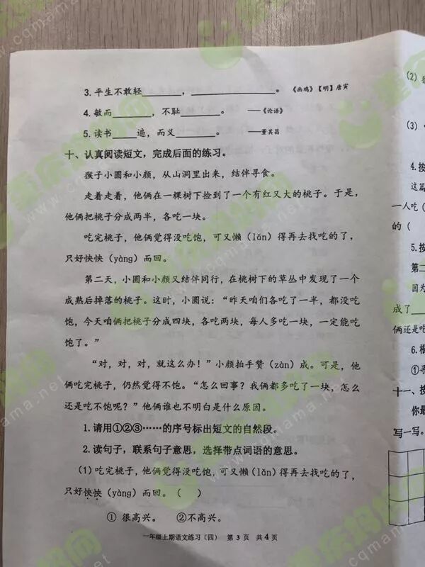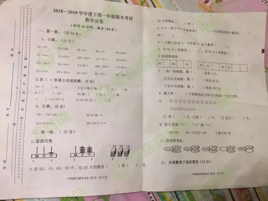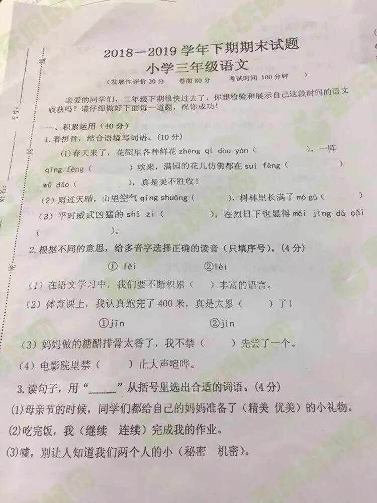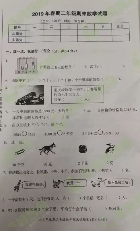 看看小学的期末试卷到底难不难