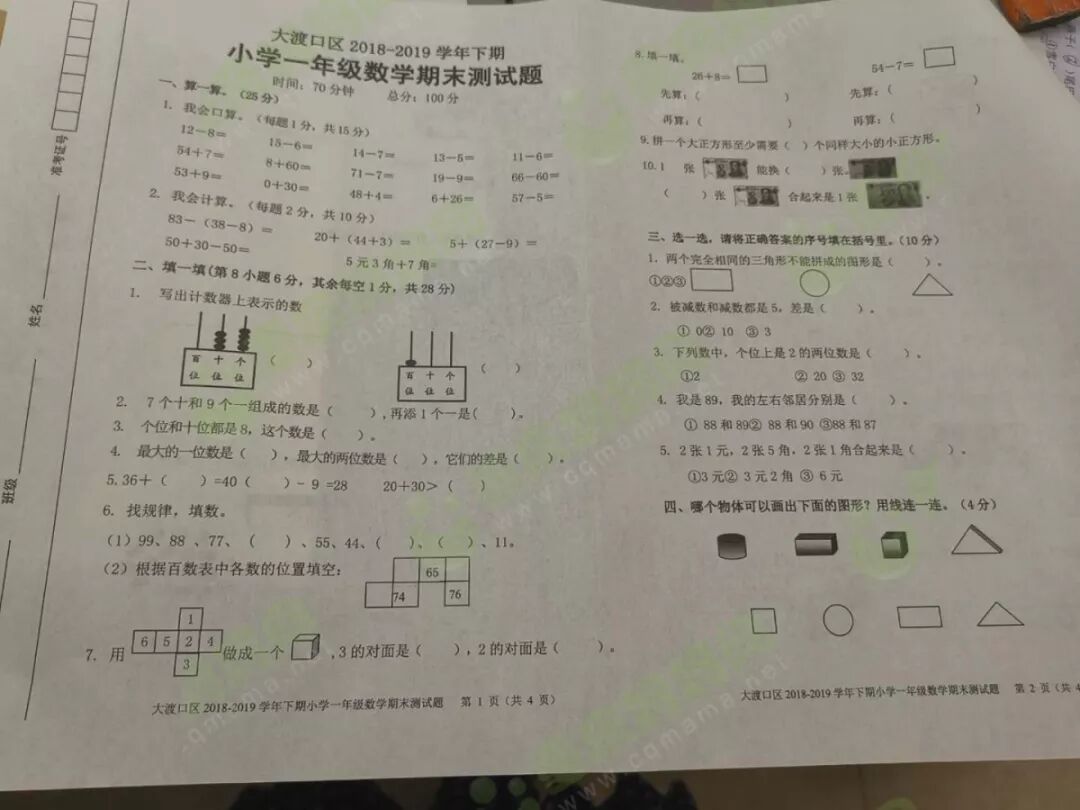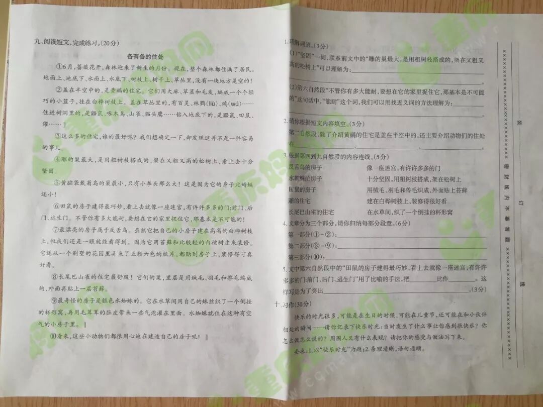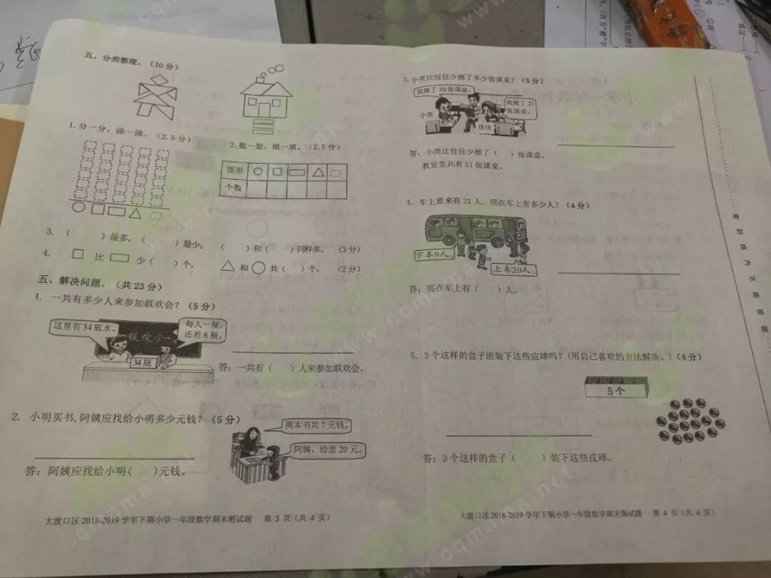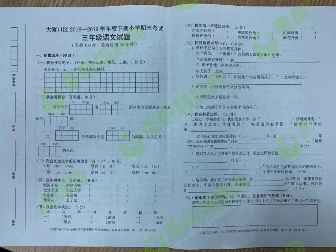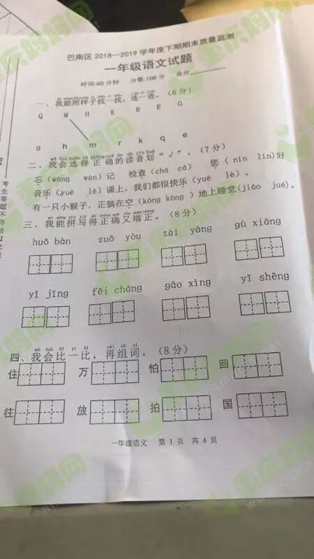 我们一起来看看重庆各区的期末试卷