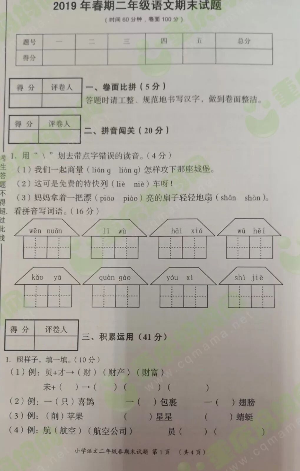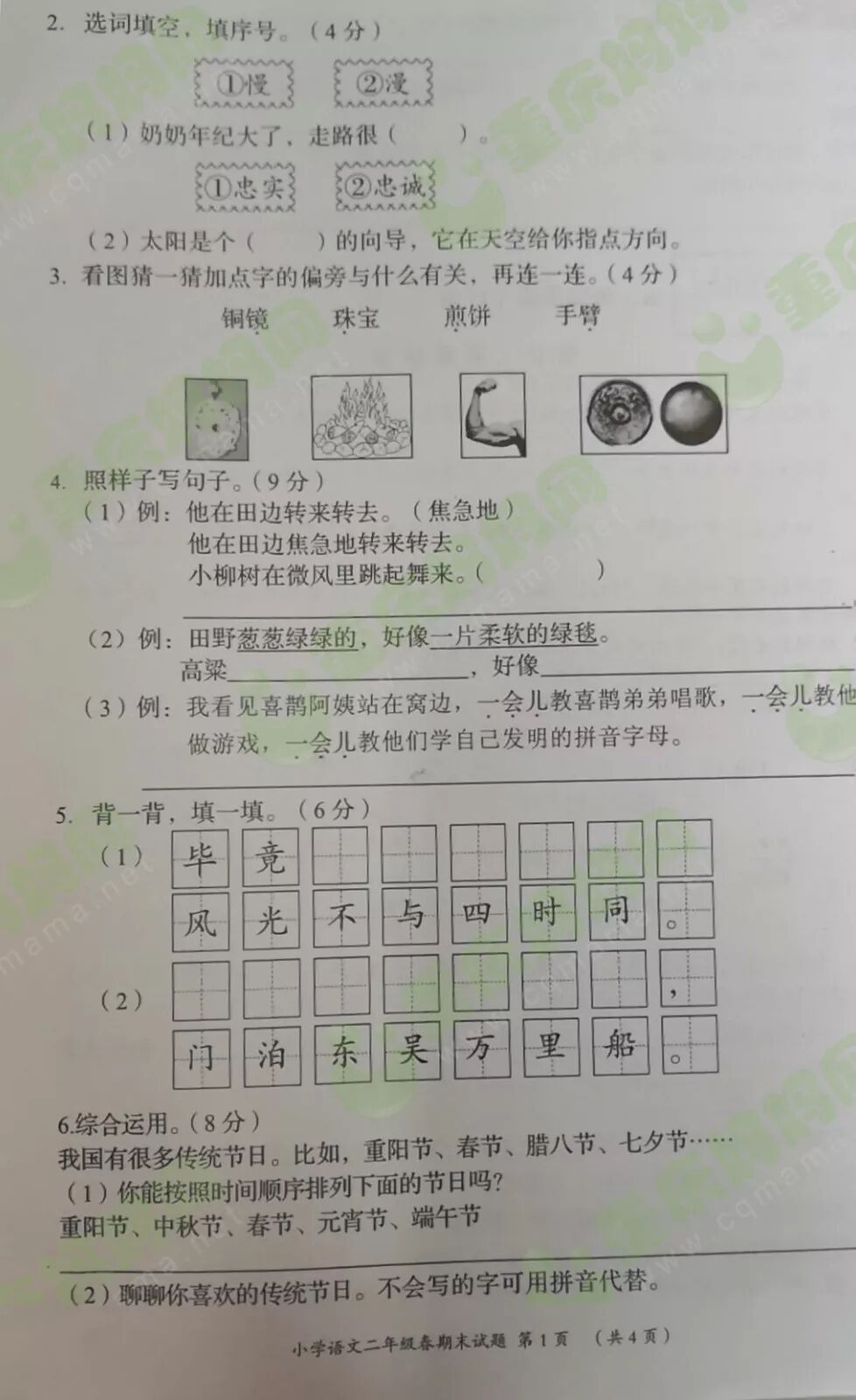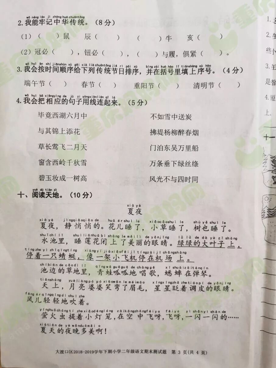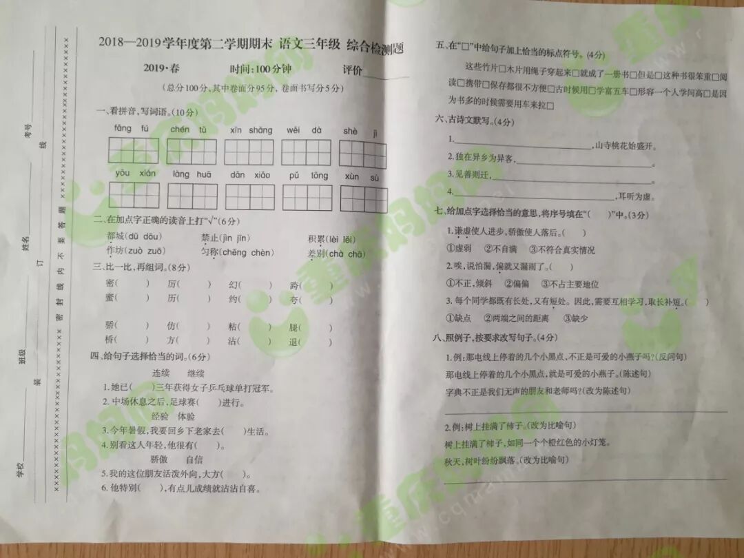 我们一起来看看重庆各区的期末试卷