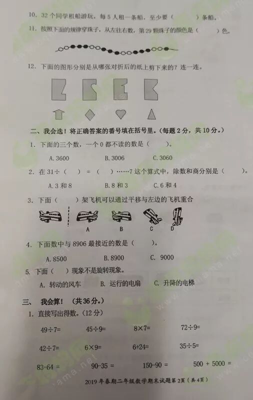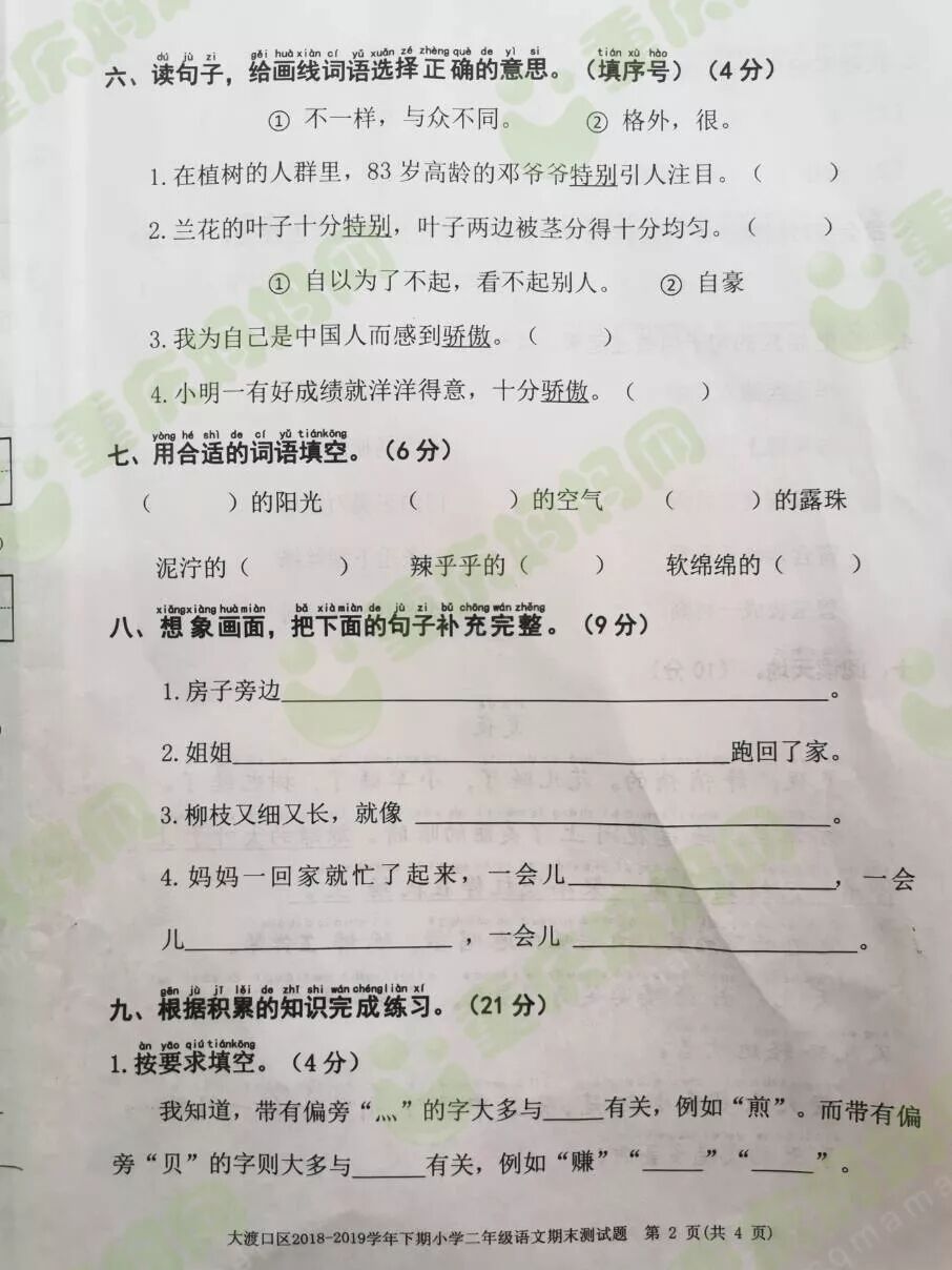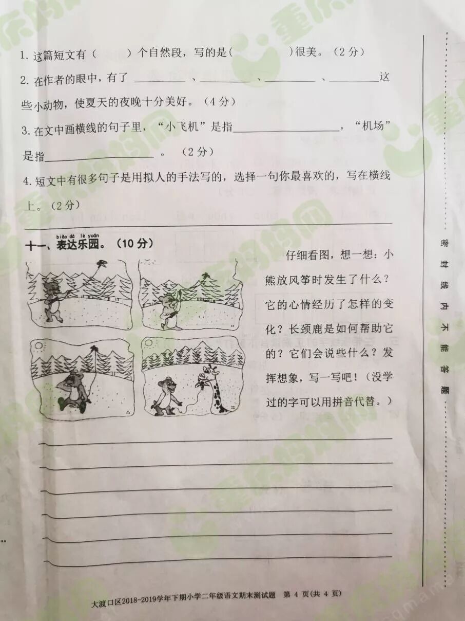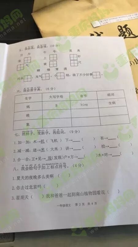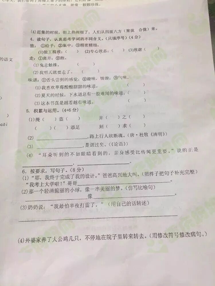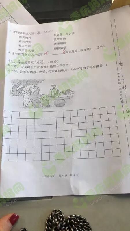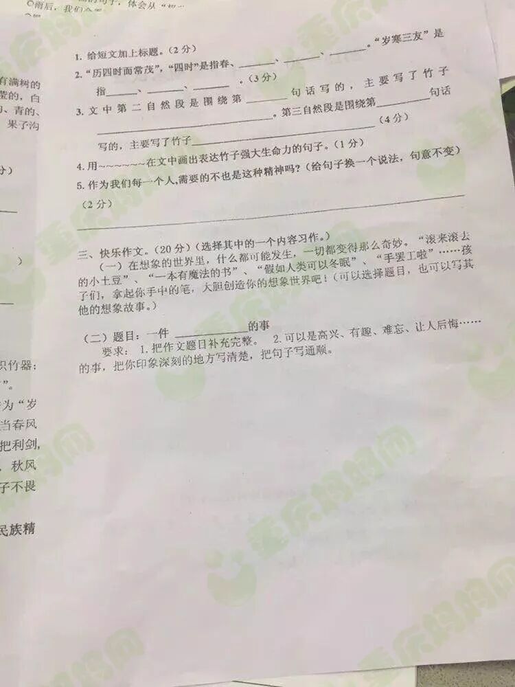 群里的妈友在在分享期末试卷